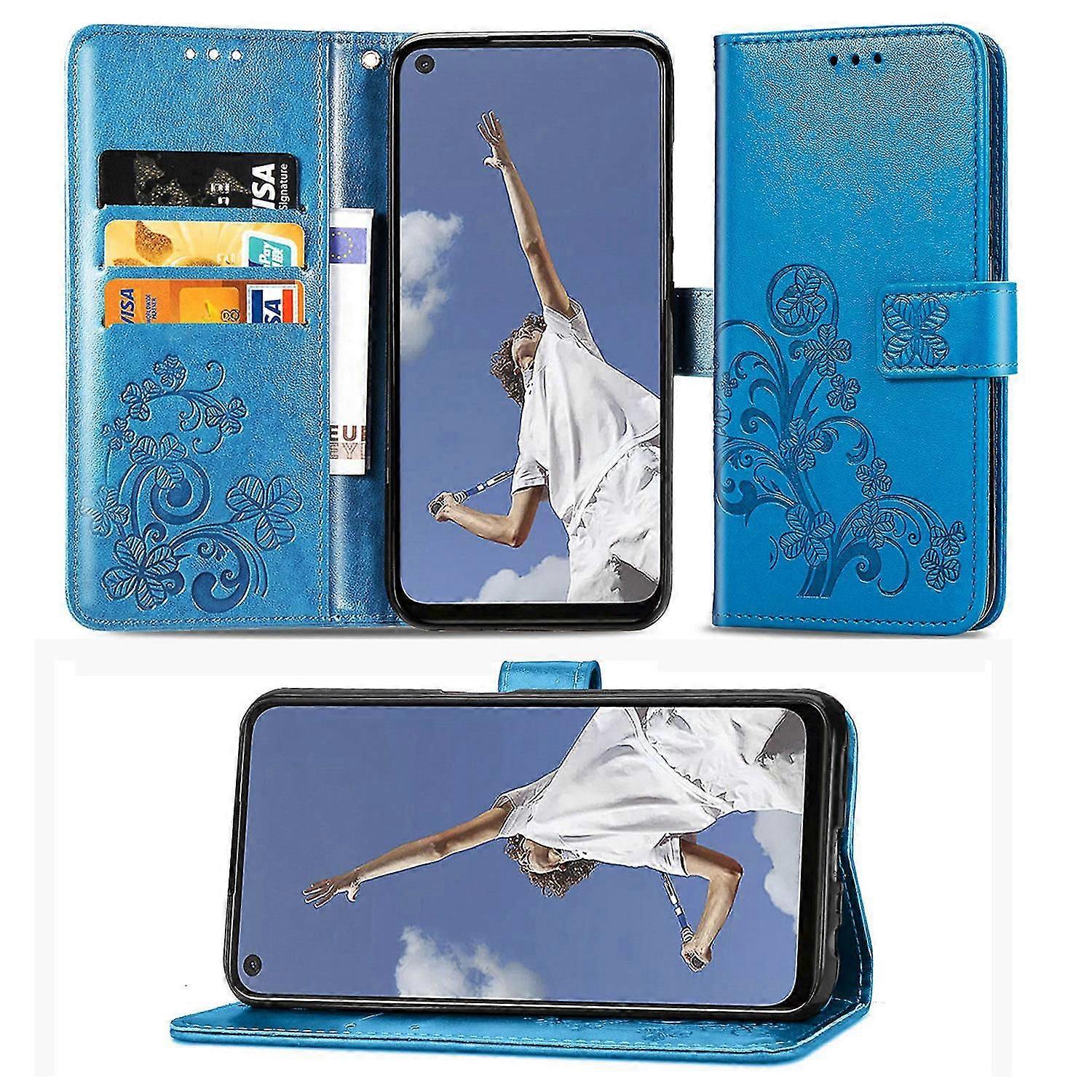 Compatible With Oppo A52/ A72/ A92 Wallet Case Card Holder Embossed Lucky Clover Pu Leather Magnetic Kickstand Cover