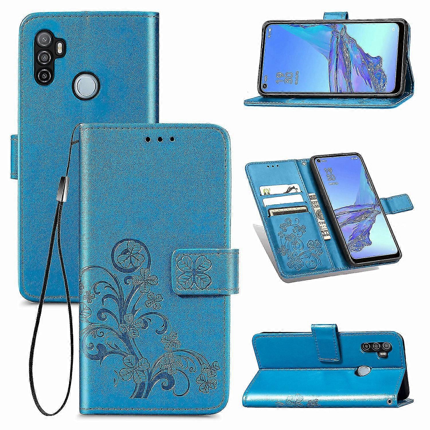 Compatible With Oppo A53/ A33 2020 Wallet Case Card Holder Embossed Lucky Clover Pu Leather Magnetic Kickstand Cover
