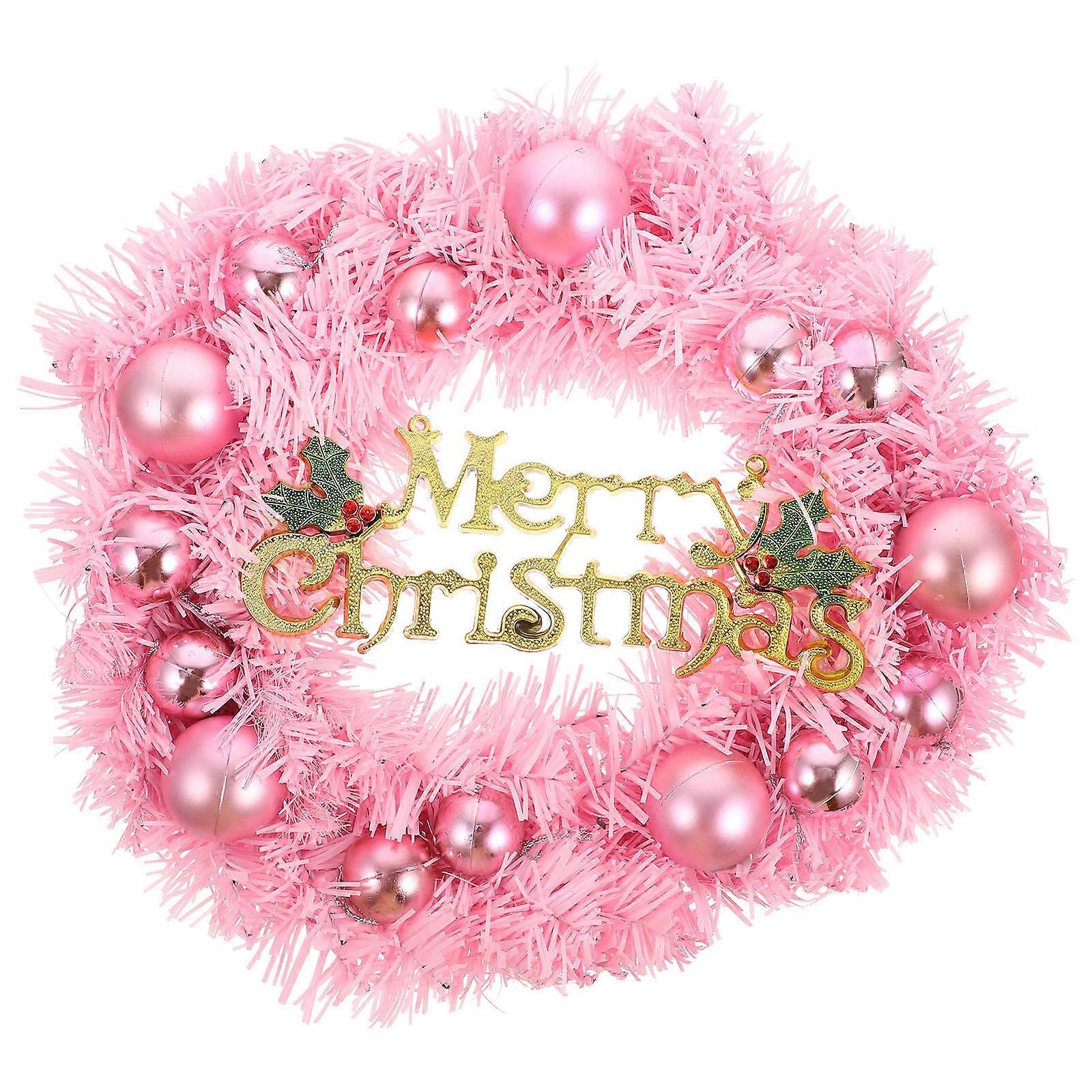 Artificial Wreath Christmas Ornament Outdoor Hanging Pink 30X30cm Circular Shape 1Pcs