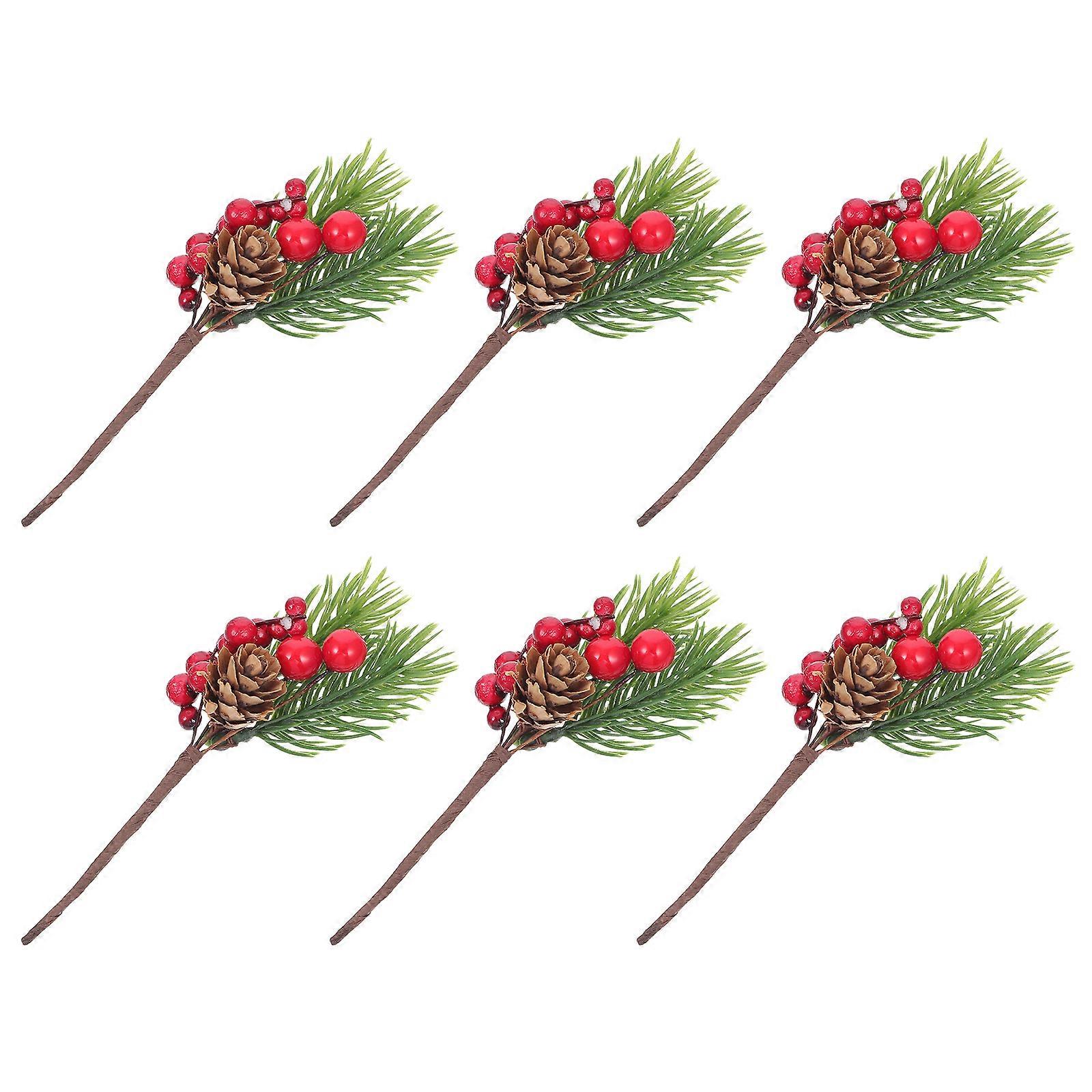 Artificial Red Berry Picks 6Pcs Faux Berry Branches Christmas Ornaments Interior Decoration Size 12X4X4CM Occasion Christmas