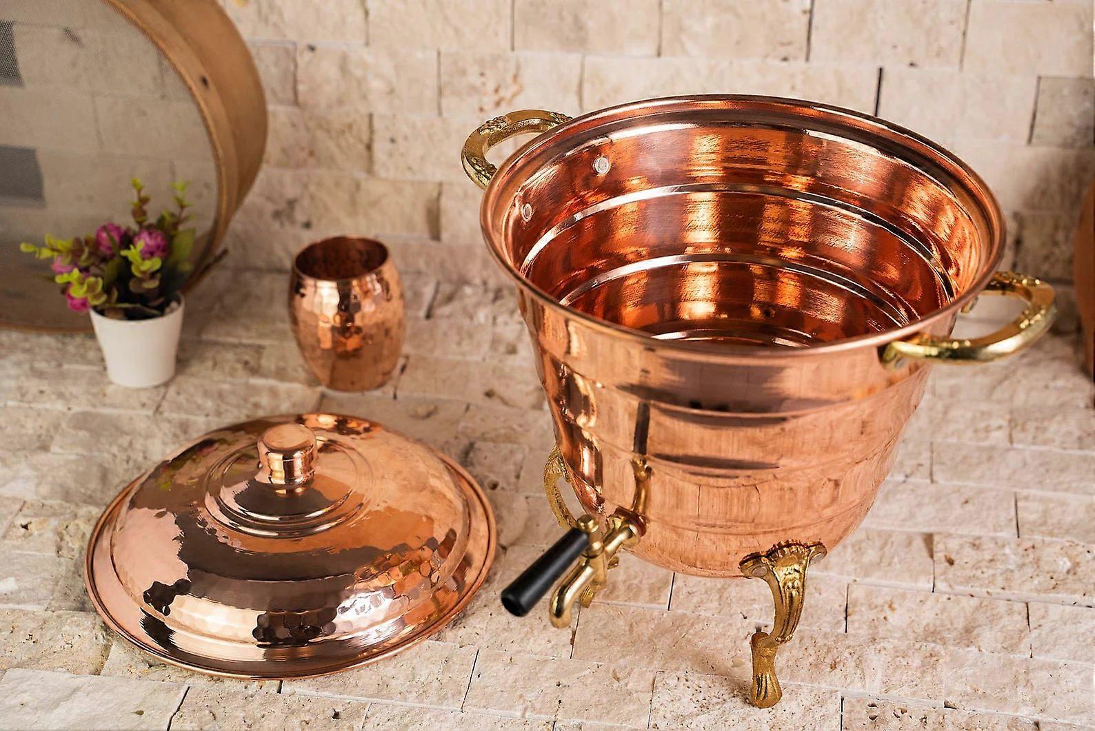 Handmade Copper Beverage Dispenser With Mug Set – 100% Solid Copper, 5l Vessel