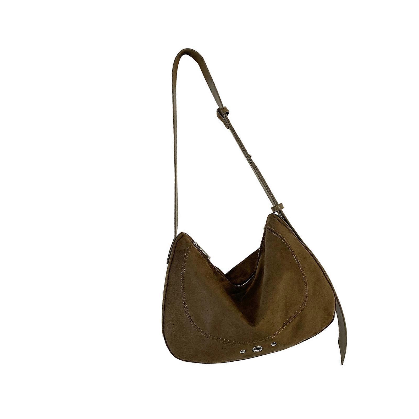 Korean Style Suedes Shoulder Bag For Women Underarm Bag Soft Lightweight Crossbody Purse Autumn Winter Fashion Accessory Khaki