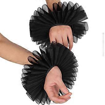 Cosplay Maid Plisserade Utsvängda Handledsmanschetter med spets Blomma Mönster Dekorer Avtagbar Handled Kvinna Kläder Tillbehör Vit