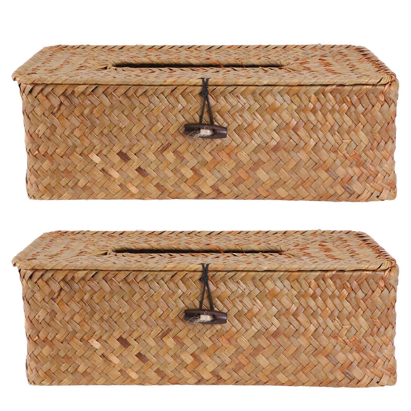 Creative Hand-Woven Seaweed Tissue Holder For Bathroom Living Room With Rectangular Shape Yellow Color And Dust-Proof Function 2Pcs