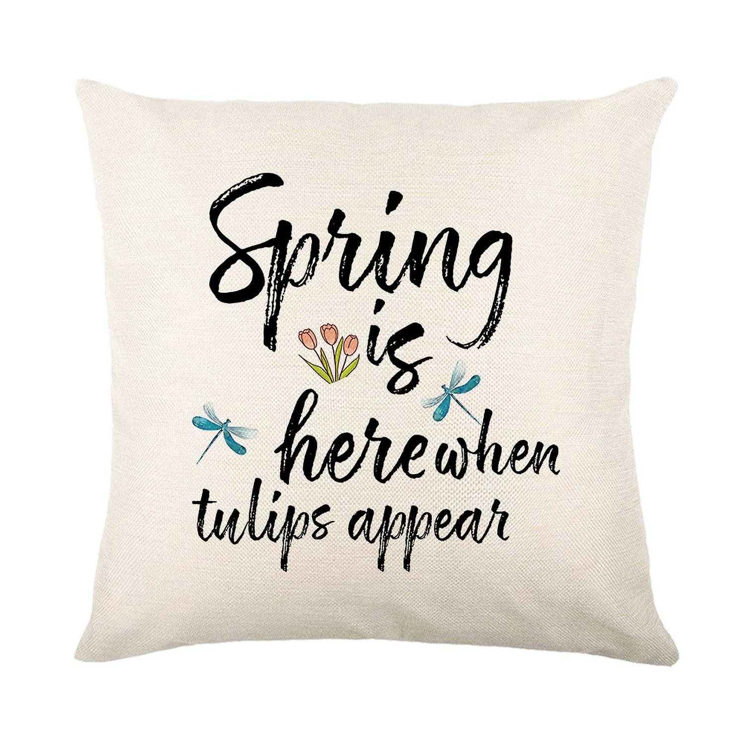 Pillow Cover Breathable Removable Flax Floral Printed Throw Pillow Case for Sofa