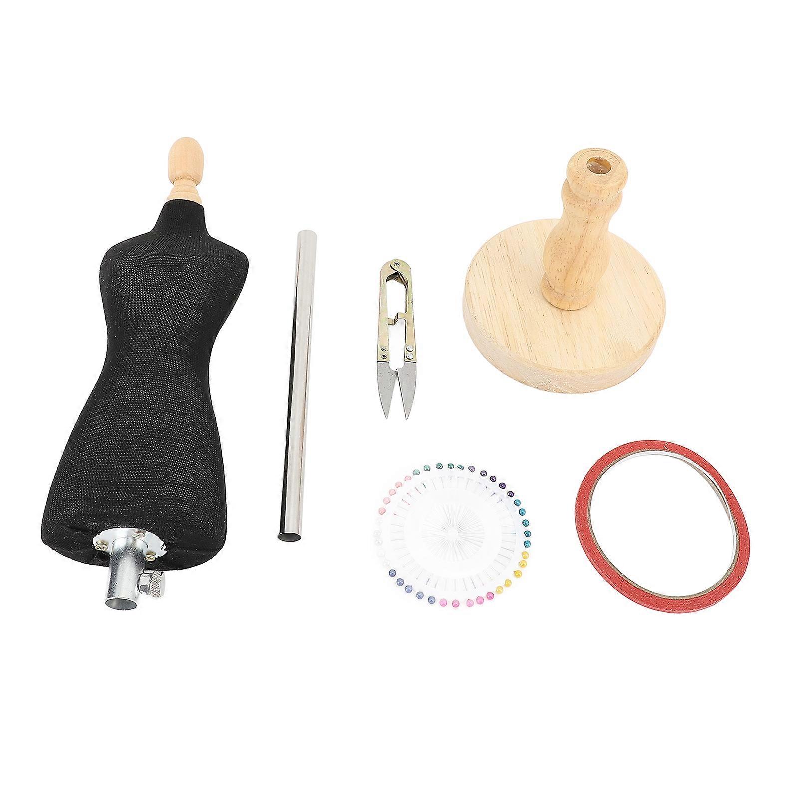 Female Dress Form Mini Desktop Sewing Mannequin Body with Stand for Cutting Clothing Jewelry Display Black