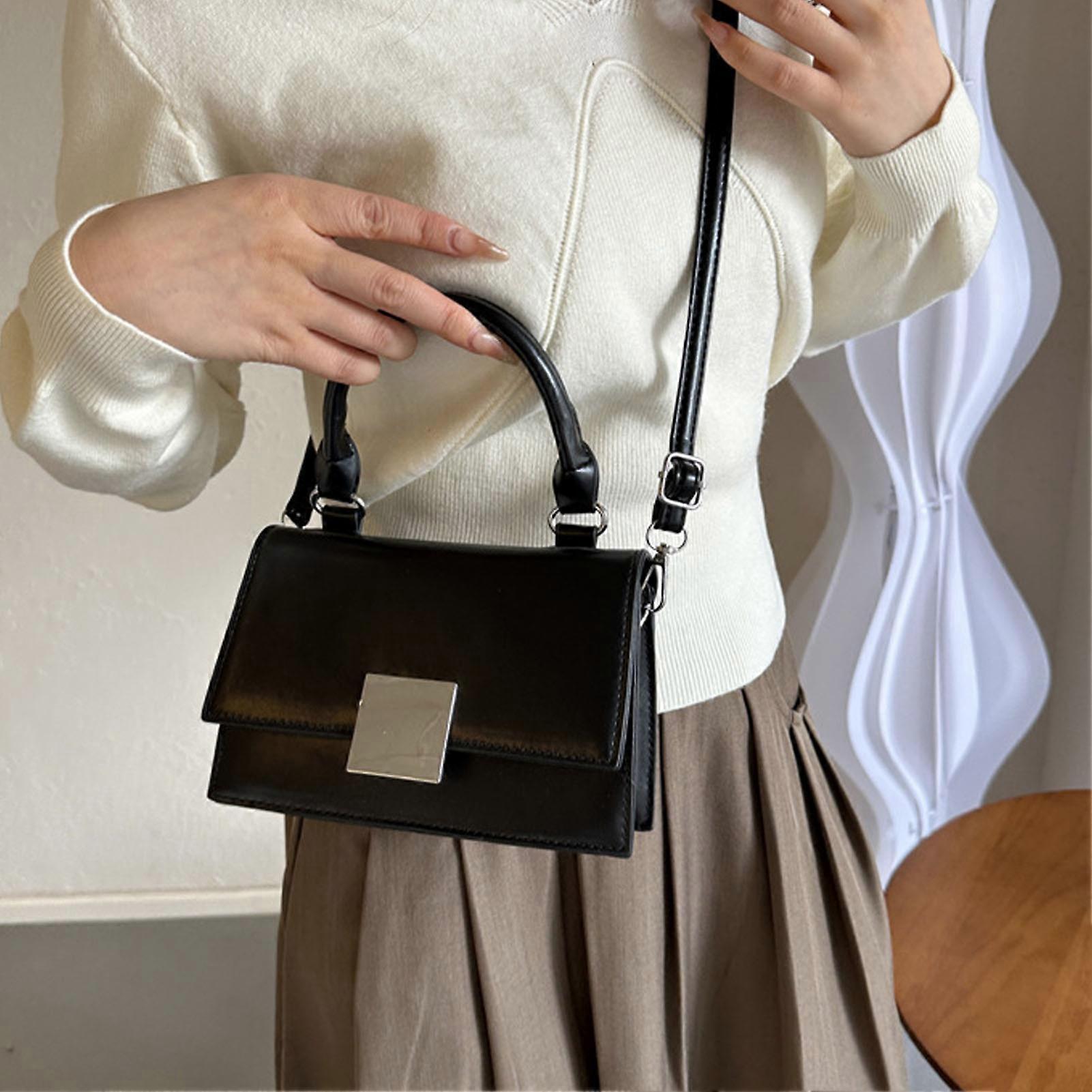 Women Shoulder Bag PU Leather Black 7.9x5.1x2.8in Minimalist Handbag