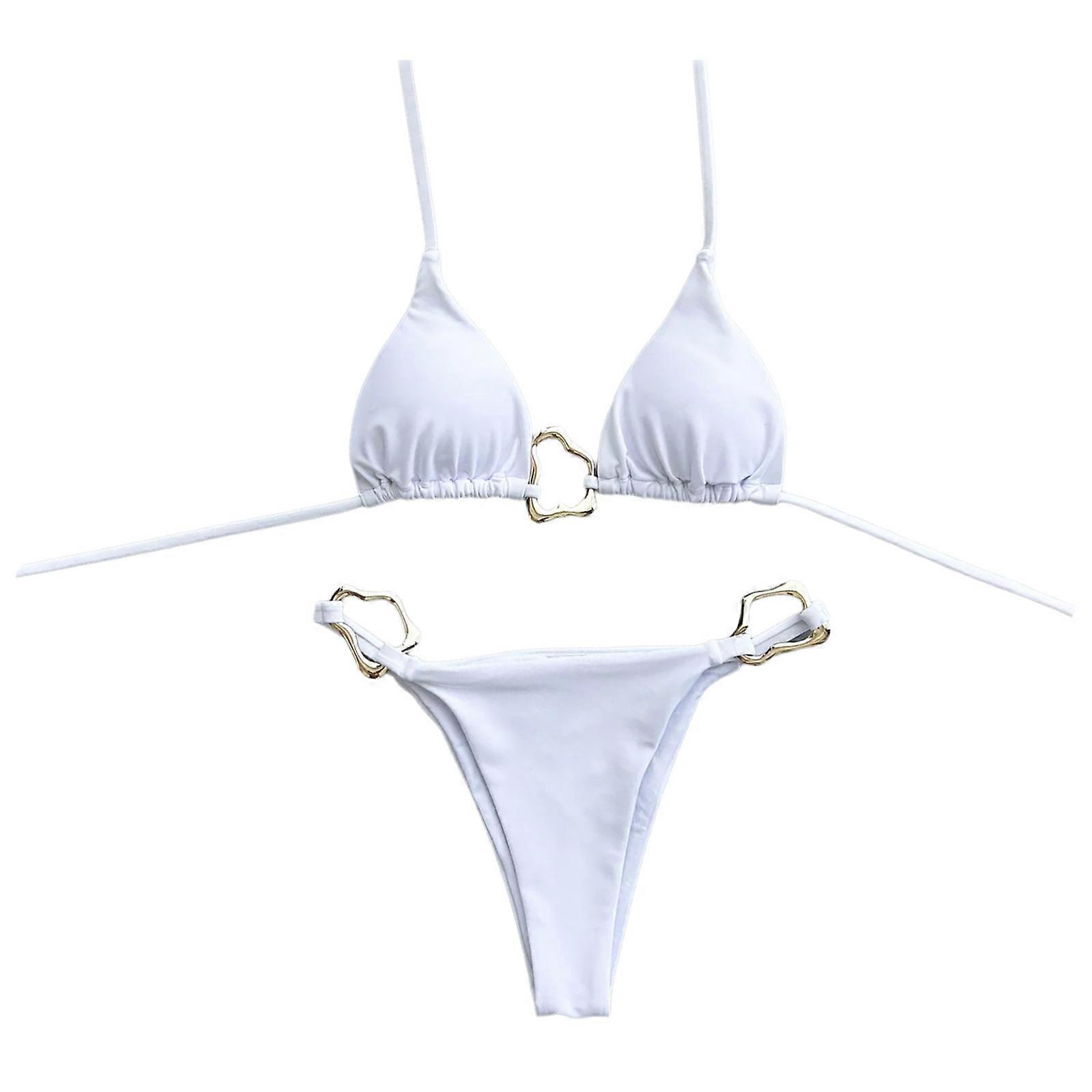 Women Split Swimsuit Swimwears Adjustable Strap Halterneck Bathing Suit Split Swimming Costume For Beach Parties Pool White S