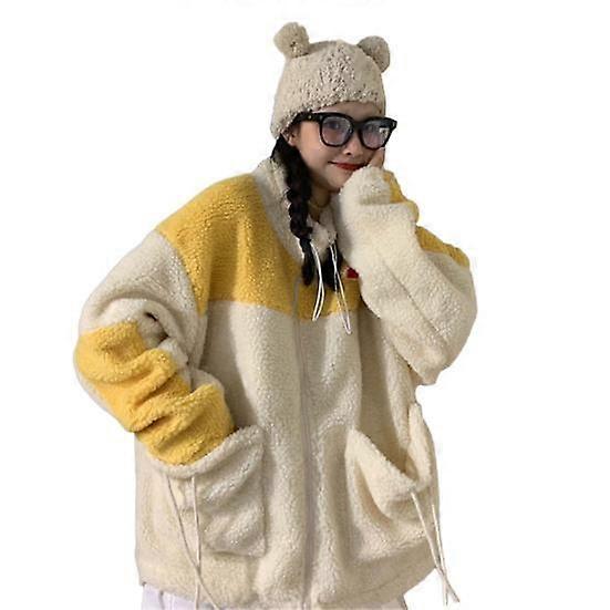 Women Winter Coat Colorbblock Thick Soft Plush Cold Resistant Patchwork Big Pockets Long Sleeve Drawstring Lady Outdoor Coat