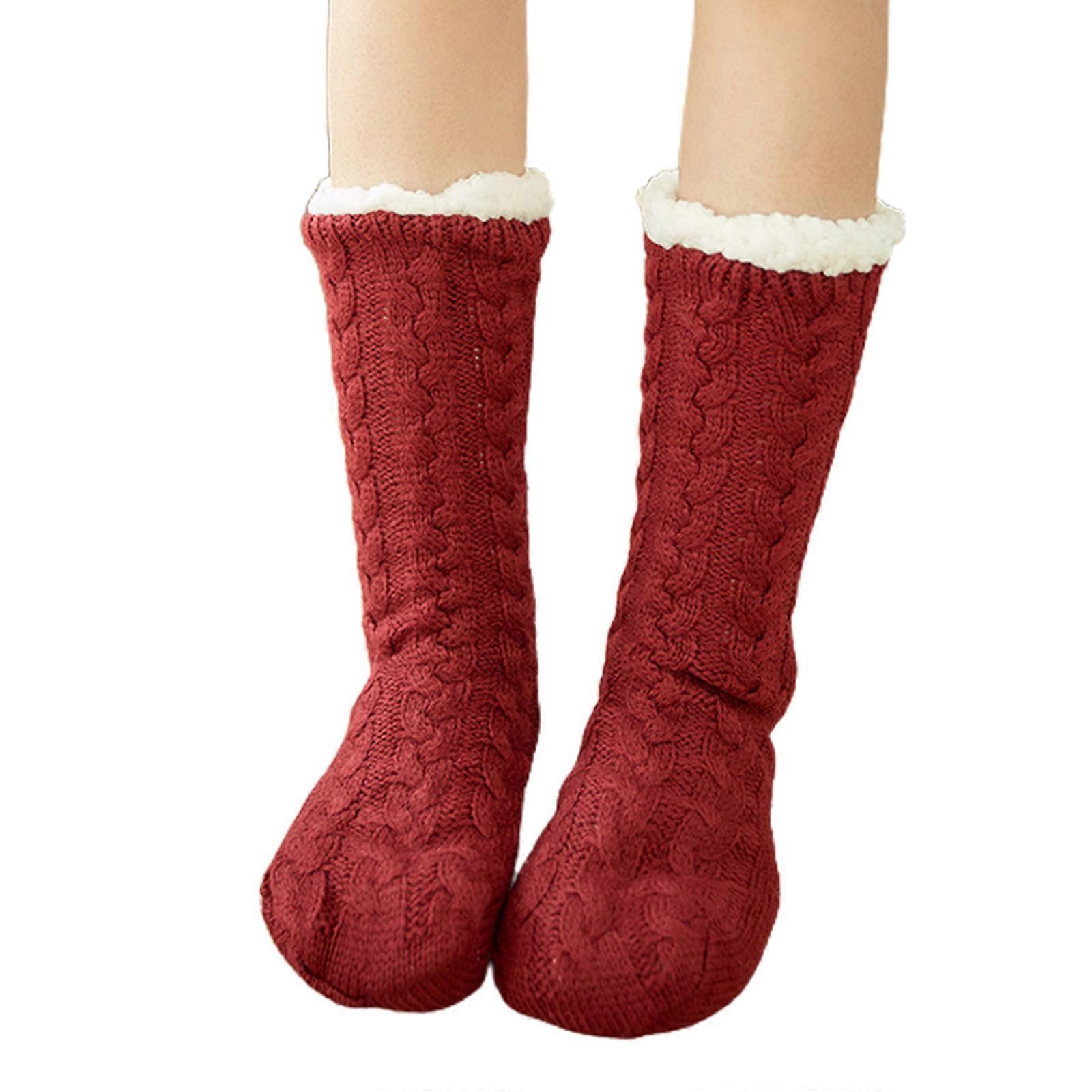 Women Winter Warm Thick Knit Plush Lined Slipper Socks Solid Color Chunky Cable Crochet Soft Fuzzy Cozy Sleeping Hosiery