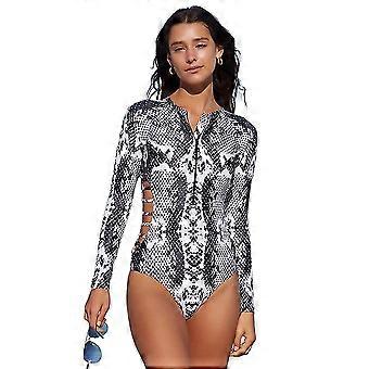 Women's Long Sleeve Rash Guard Uv Protection Zipper Printed Surfing One Piece Swimsuit Bathing Suit