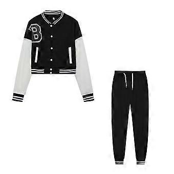 Women's Monogrammed Colour Block Single Breasted Printed Sports Jacket Set