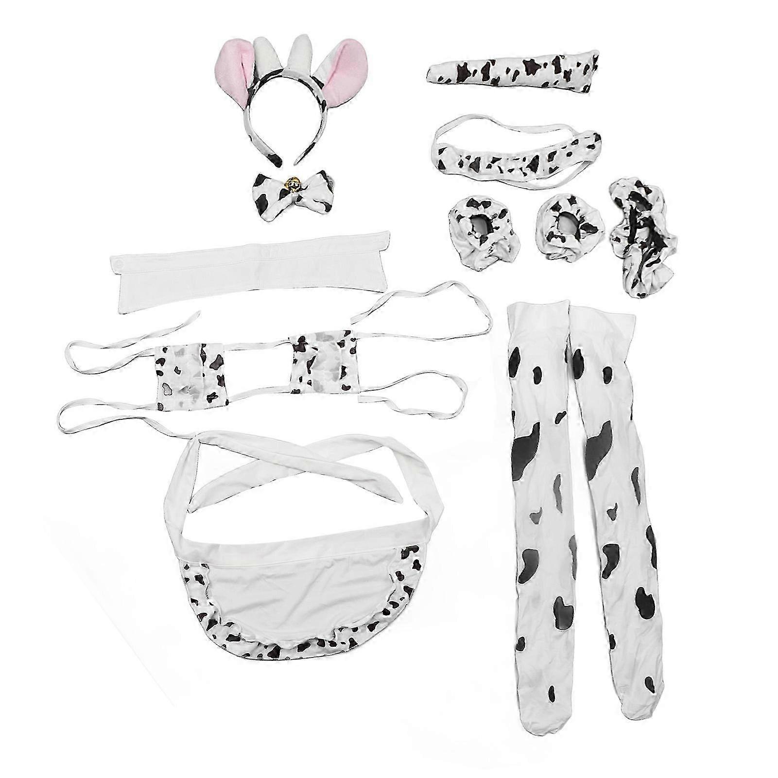 Women's Cute Cow Style Cosplay Uniform Set with Headwear, Underwear, and Apron