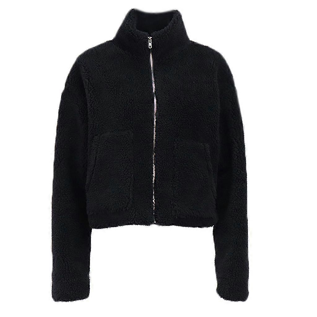 Women Winter Long Sleeve Faux Fur for Jacket Stand Collar Fuzzy Plush Warm Zip Up Oversized Coat Short Outwear with Pockets