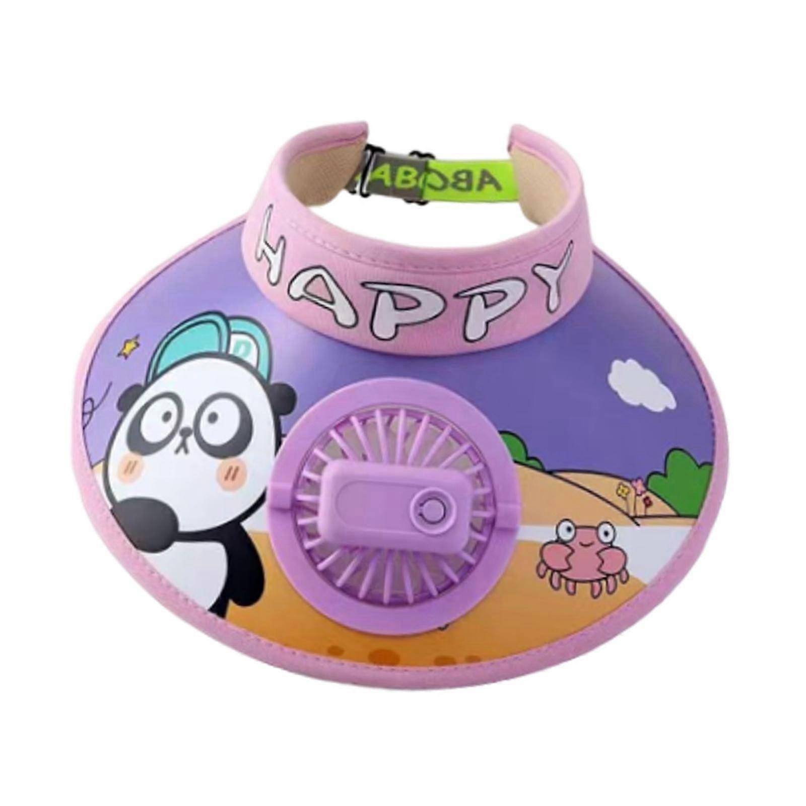 Cooling Fan Hat Breathable Boys Kids Girls Sun Protect Beach Hat Sport Hat Panda Purple