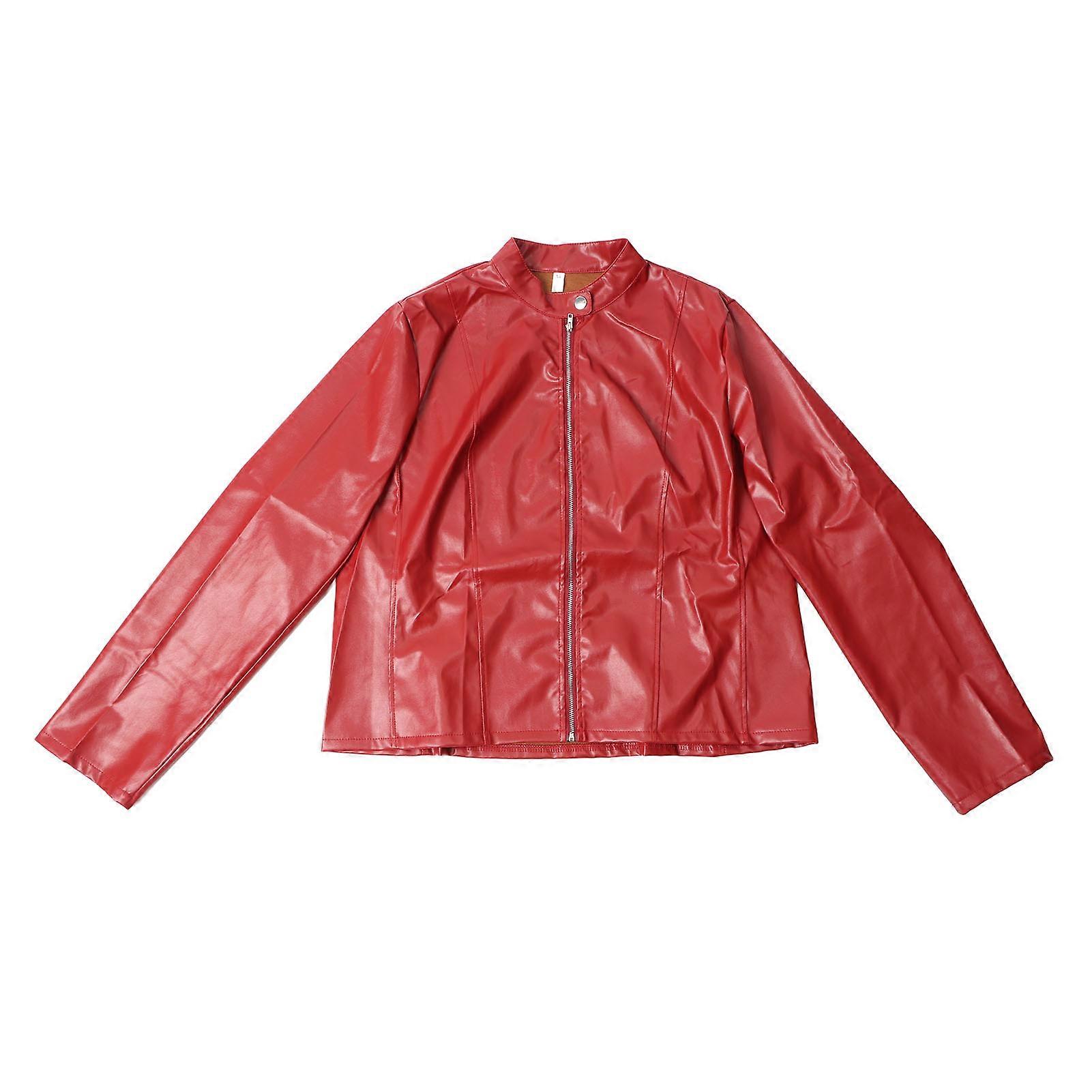 Leather Long Sleeve Jackets Zip Up Slim Fit Leather Cropped Coats Lightweight Leather Short Jacket for Women Wine Red XL