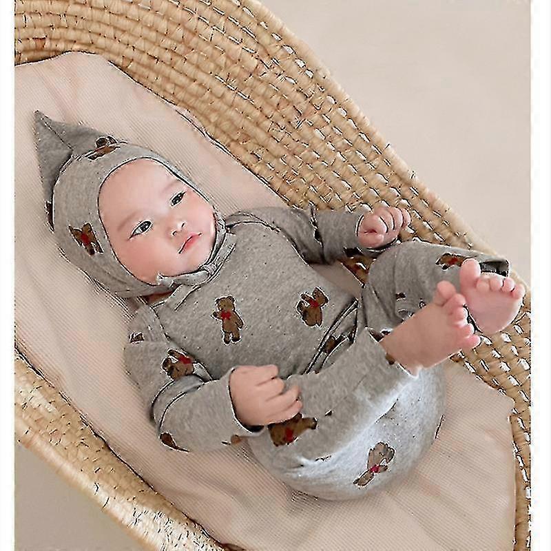 Long Sleeve Cotton Rompers For Boys & Girls Gray