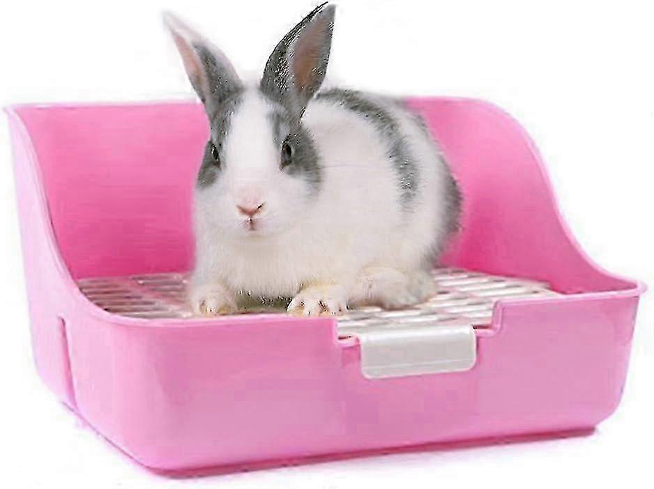 Easy to Clean Rabbit Litter Box, Toilet Training, for Small Animals/Rabbits/Guinea Pigs/Ferrets (Pink)