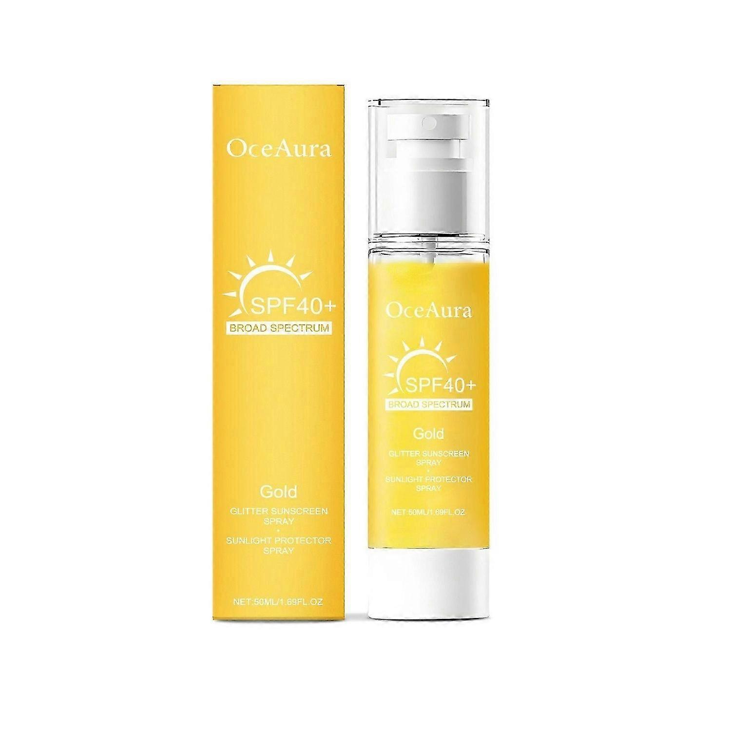 Light Sun Cream for Face and Body, Golden Glitter Sun Protection, SPF 40 Shimmering, UVA/UVB Protection, Waterproof