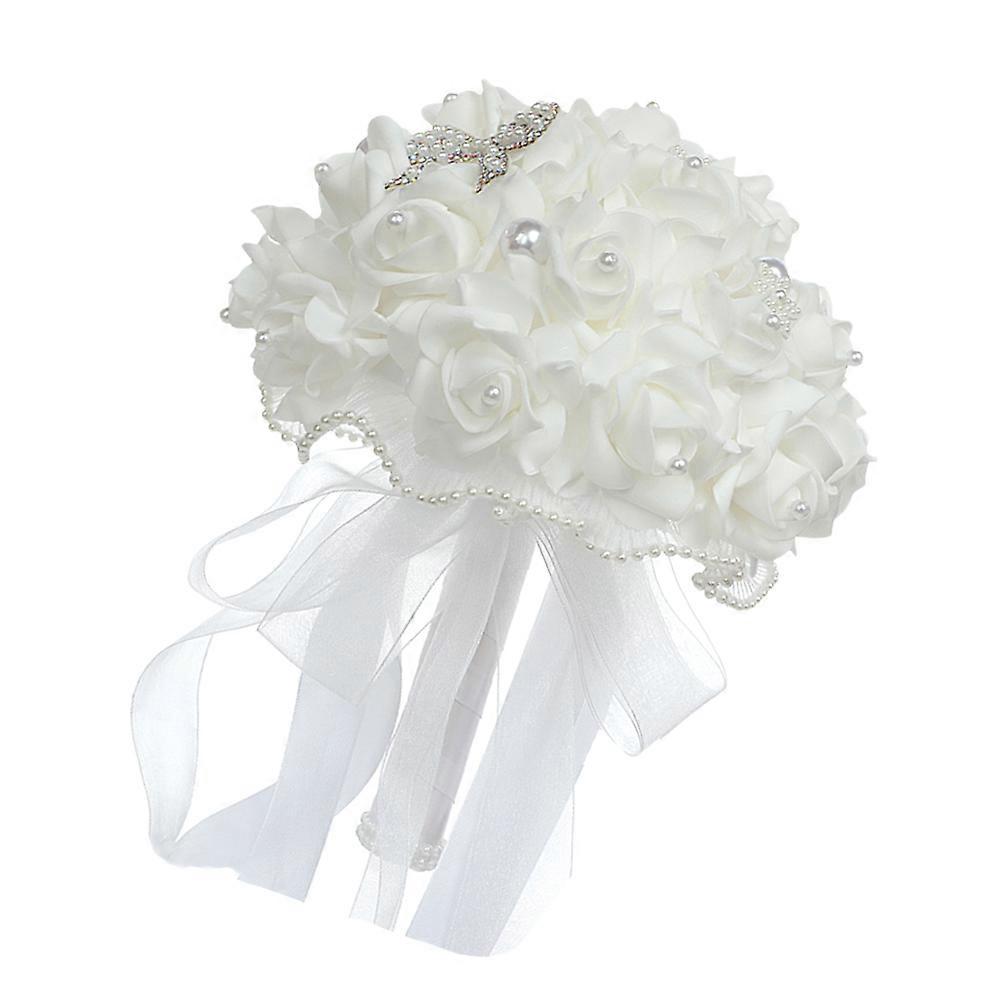 Small Wedding Bouquet Simulation Flower Bridal Bouquet White 25x22cm 1Pc