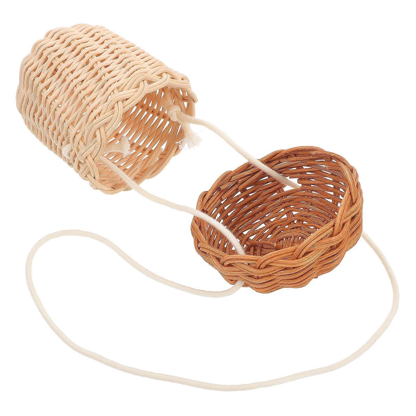 Small Brown Rattan Pine Cone Cross-Body Bag for Storage Use 4Pcs Set