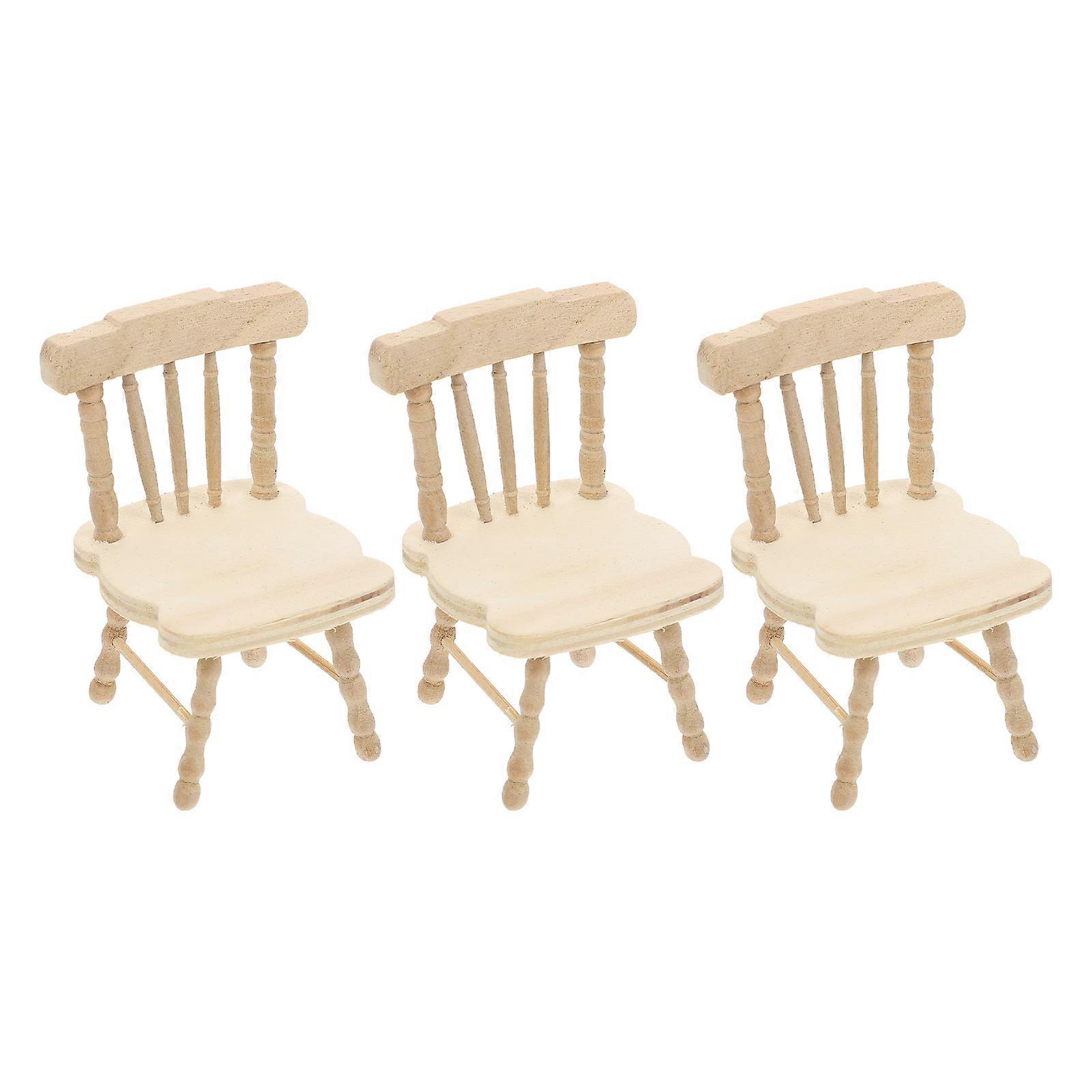 Small House Accessories Wooden Chair Miniature For Bedroom Ornament 3Pcs
