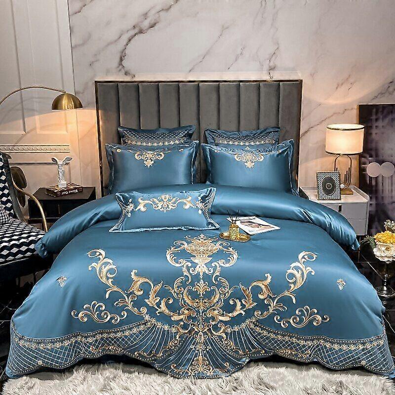 Luxury Gold Royal Embroidery Satin And Cotton Bedding Set Duvet Cover Pillowcase