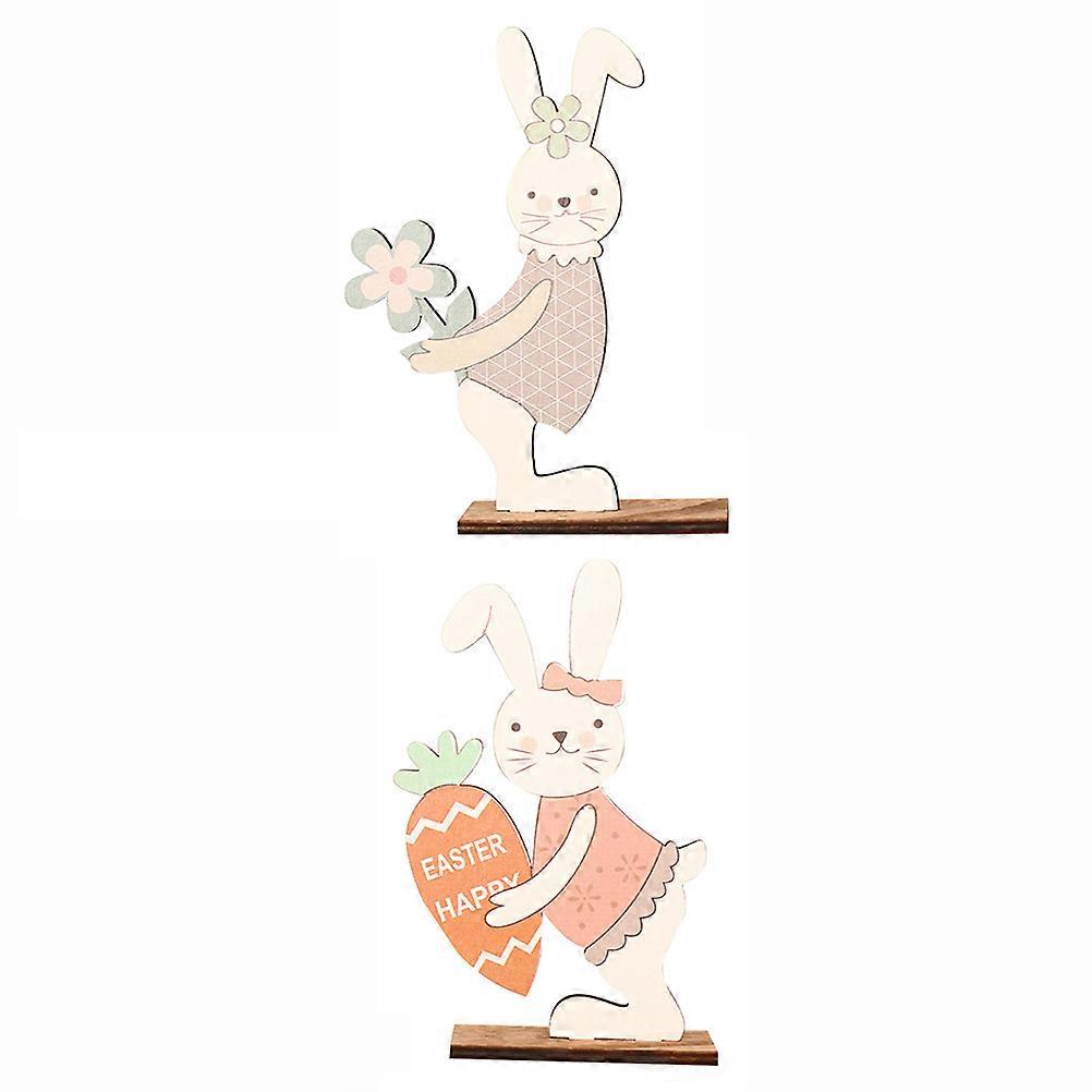 Painted Rabbit Ornaments Wooden Bunny Models for 2Pcs Holiday Decor