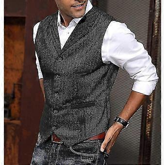 Mäns fiskbensmönstrad ull Tweed väst, hakslag elegant väst för formell / casual