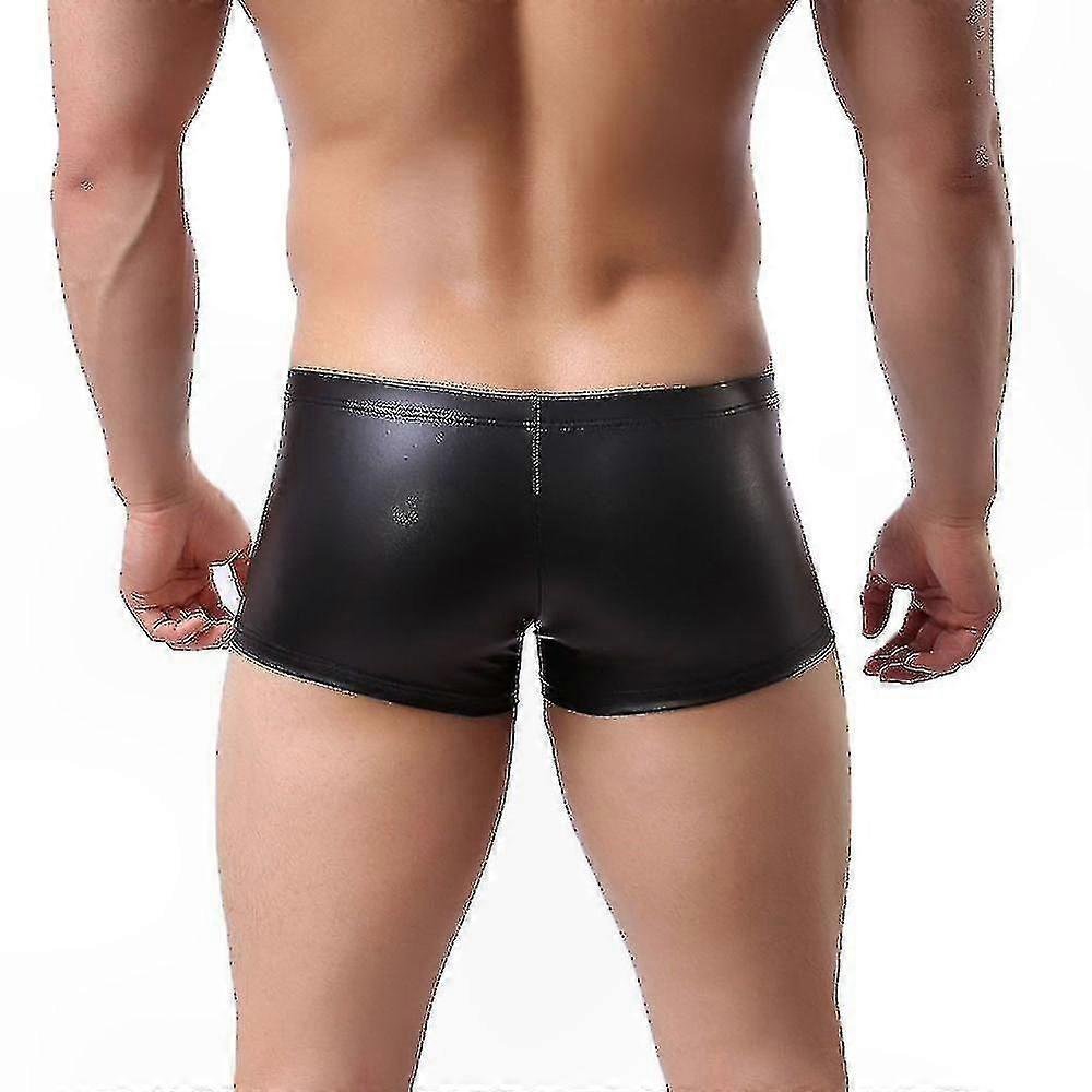 . Men's Faux Leather Briefs, Low Waist Boxers, Patent Leather, Sexy U-Shaped Pouch, Boxer Briefs Fabric: Milk Silk Lining Composition: Polyester Colors: Silver, Gold, Black Sizes: M, L, XL, XXL Package Includes: 1 x Men's Boxer Briefs Note: 1. Due to different monitors, lighting conditions, and screen settings, the actual color may vary slightly from the image. 2. Manual measurement may result in a 0-1 cm size variation.