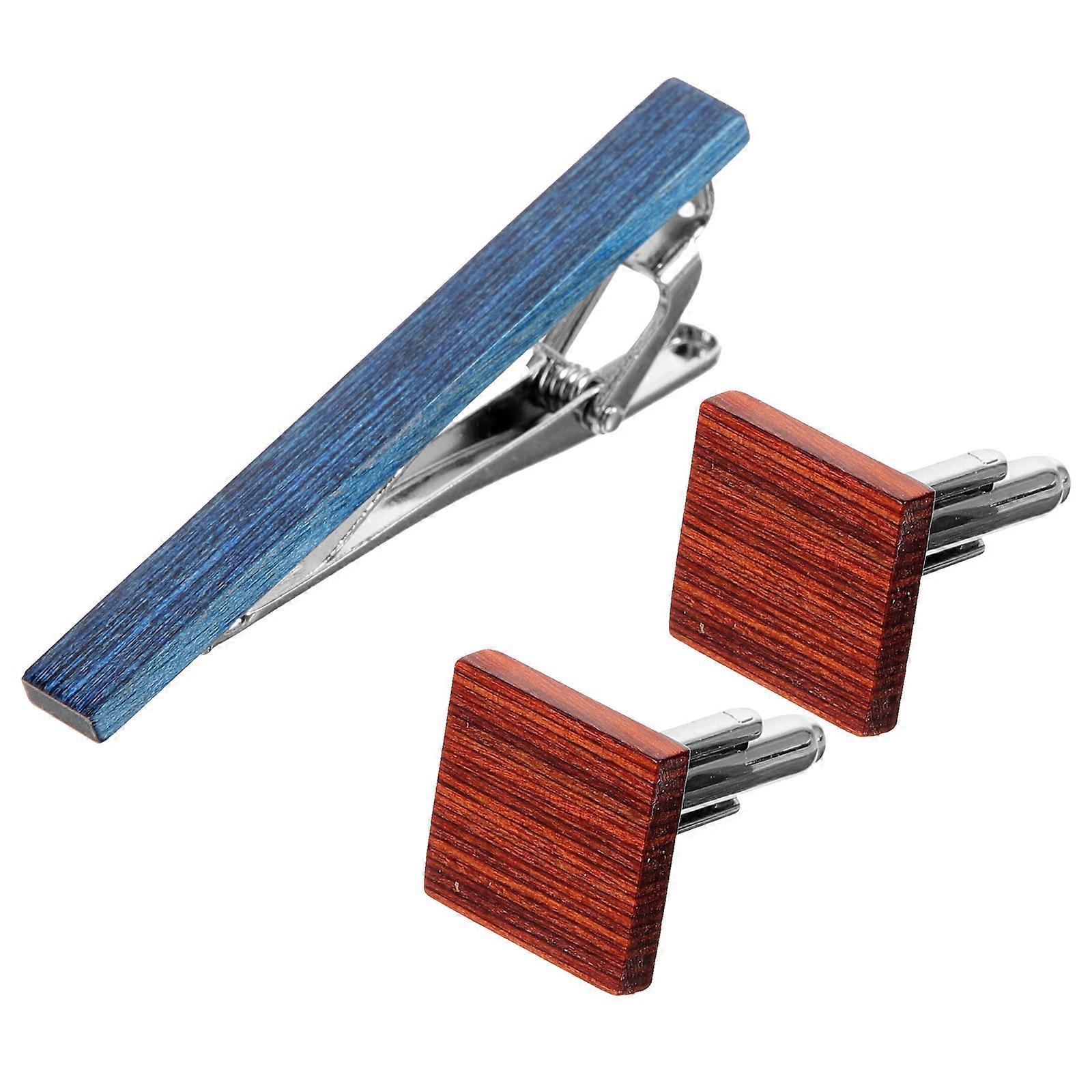 Cuff Tie Clip Set Parties Business Occasion Wood Material Firm Attachment 1Set