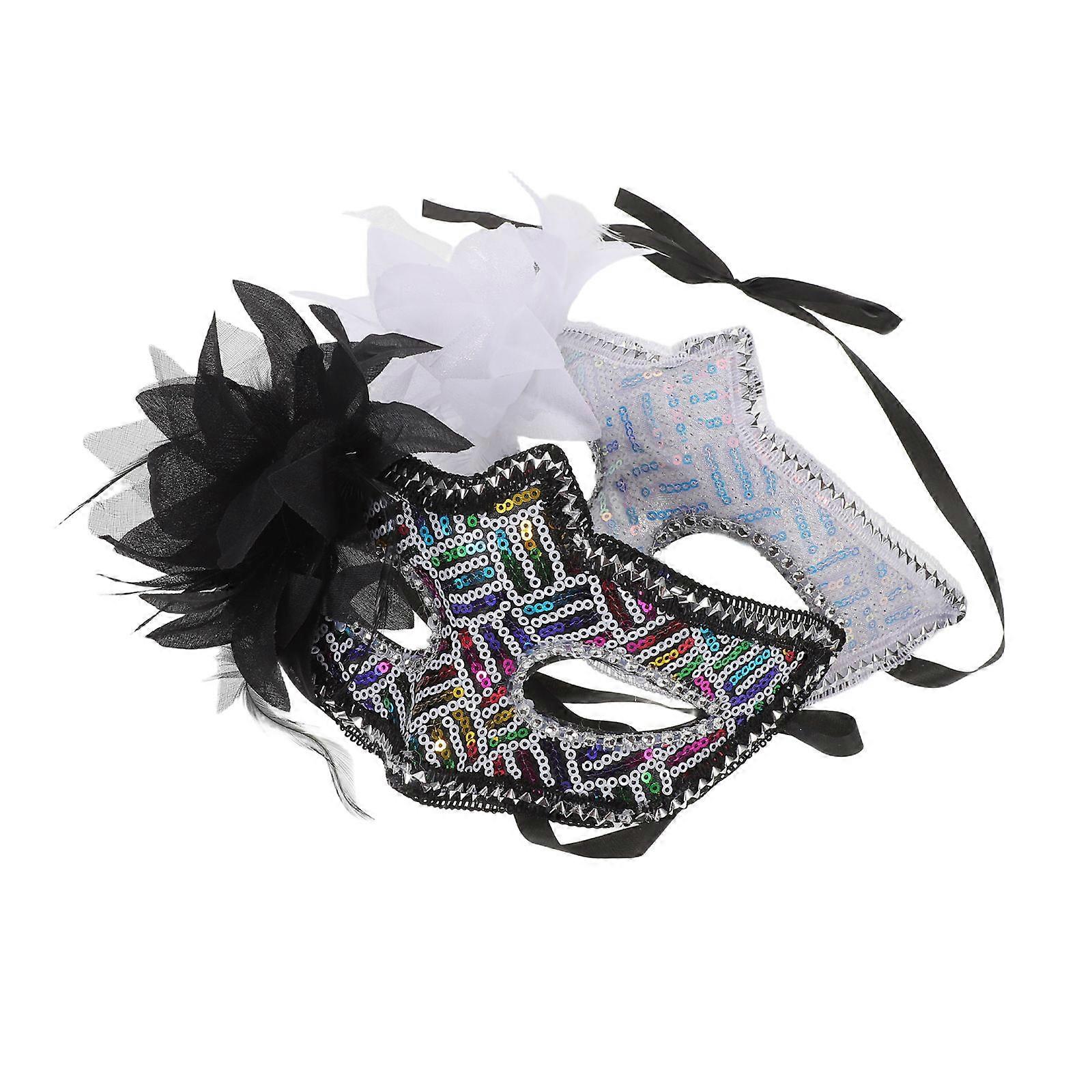 Masquerade Mask Women Half-Face with Side Flower 2Pcs for Costume Parties