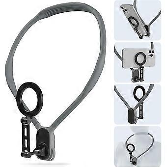 Max Magnetic Neck Mount for Phones, Fixing Chest Strap Selfie Mount Hand Free Phone Neck Holder Stand Video Recording for iPhone Android Phones (Gray)