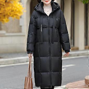 Middle Age Women Winter Long Down Coats Vintage Plus Size Prakas Hooded Loose Elegant Thick Warm Down Jackets Woman Overcoat