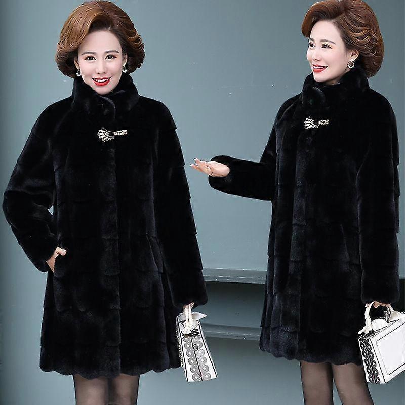 Middle-aged Mother Winter Coat Middle-aged and Elderly Women's Mid-length Imitation Leather Thickened Imitation Mink Fleece Coat