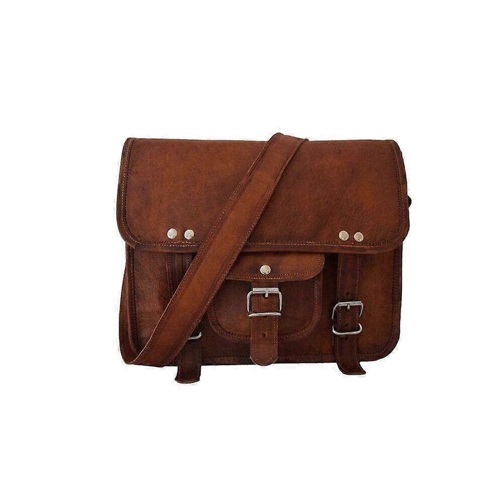 MADE IN INDIA HANDMADE VINTAGE LEATHER CROSSBODY MESSENGER BAG UNISEX TEENS SCHOOL SATCHEL HANDBAG SLING BAGS FITS UP TO IPAD/TAB MINI ITEM DESCRIPTIONS- Outside Measurements (In inches) - 11 (Length) x 9 (Height) x 3 (Width/Deep) Inside Measurements (In inches) - 10.5 (Length) x 8.5 (Height) x 2.5 (Width/Deep) Front: 1 small pocket and 1 zipper pocket Inside: 1 zipper pocket Inside: 2 partitions to keep stuff 1" wide and 58" Long adjustable Leather shoulder strap MATERIAL DESCRIPTIONS- Genuine Vintage Goat Full Grain Leather Processed (No bad smell) Naturally tanned with sunflower oil only, no use of dye or chemicals Inside flap is nicely lined with durable canvas lining Heavy Duty Double Chrome Polished Solid accessories