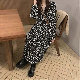 Gentle Floral Print V-Neck Dress Women's Spring Coat High-Grade Black Inner Floral Print Long Skirt