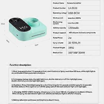 Mini Camera Shape Humidifier for Bedroom Office Green