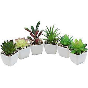 Mini Artificial Succulents Artificial Plastic Potted Plants Succulents Assortment Plants for Home Office Table Decoration, Set of 6