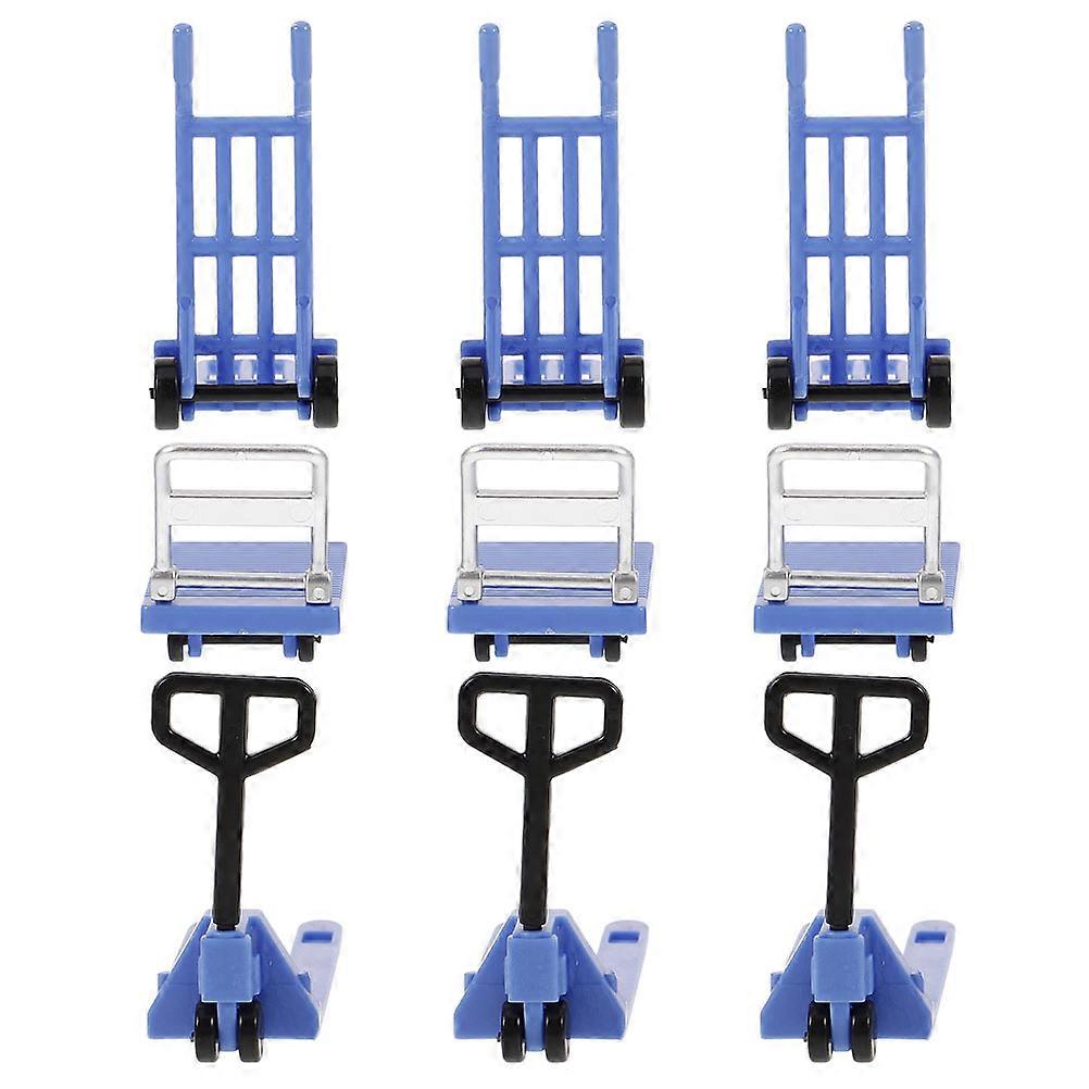 Miniature Hand Pulley Toy 3Sets for Decorative Display in Blue Material