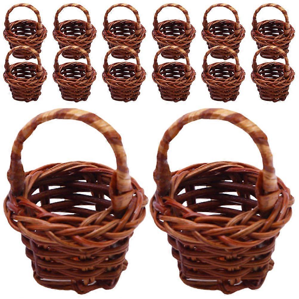 Miniature Woven Rattan Flower Basket for Storage Dark Brown 20pcs Small Picnic Baskets