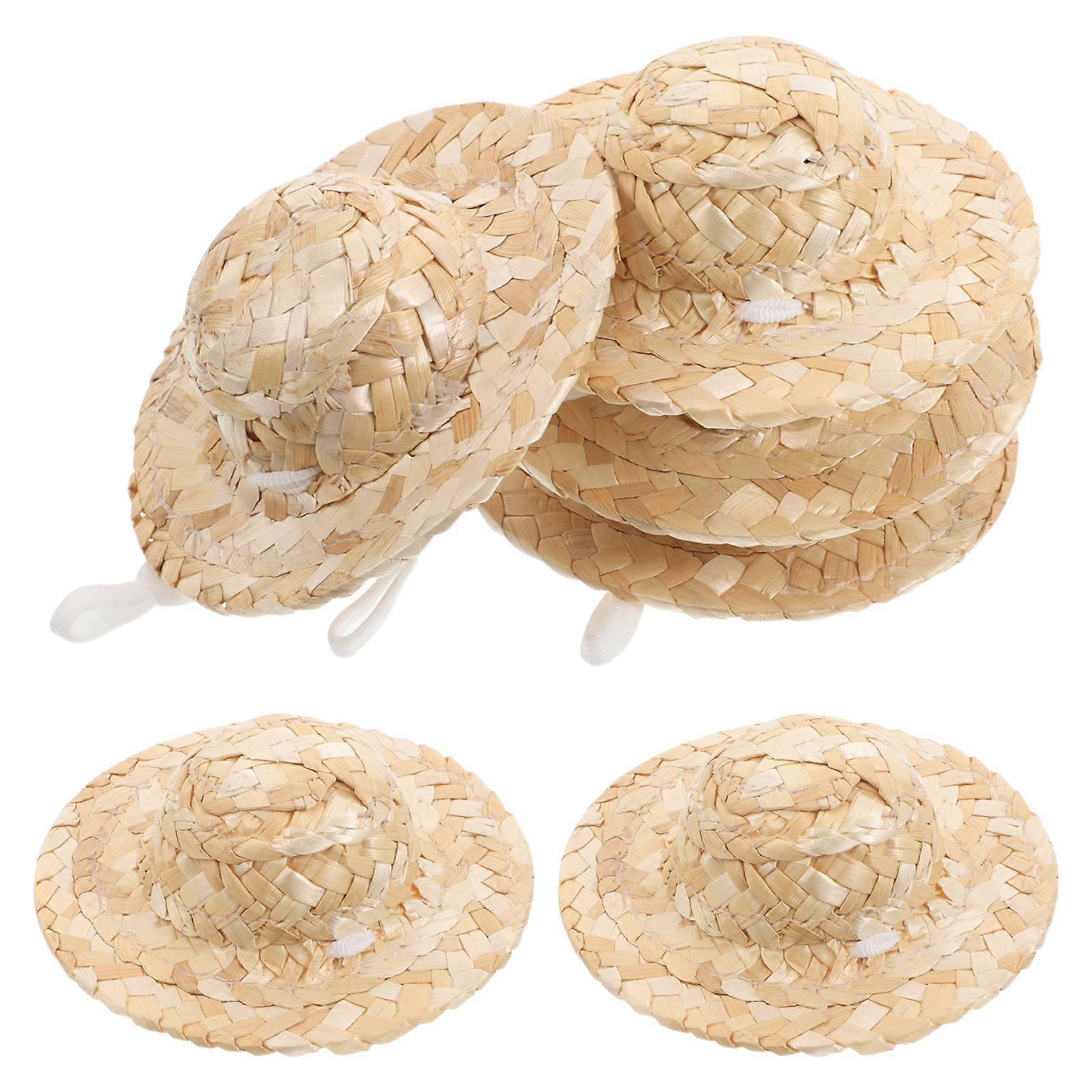Mini Hat Doll Accessories for Summer Protection 12Pcs Assorted Color Bamboo Hats