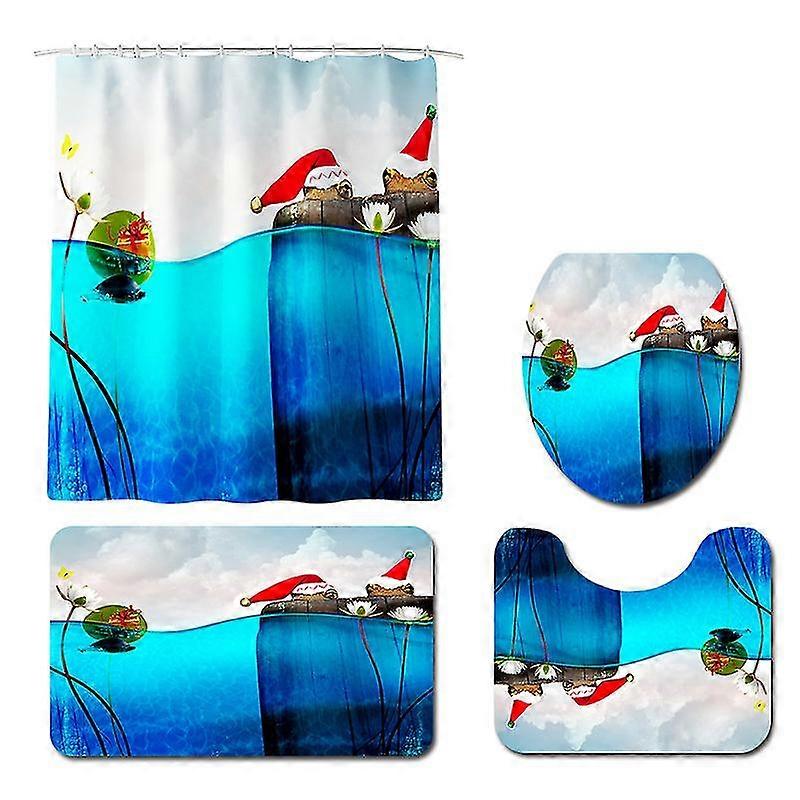 Mng Christmas Print Waterproof Toilet Carpet Set
