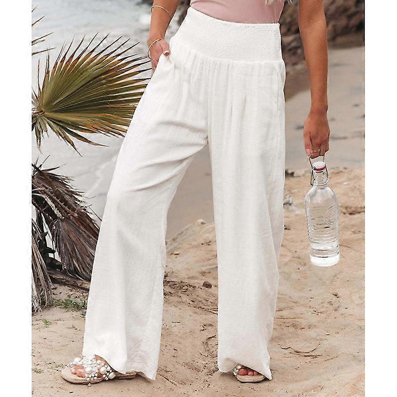 Fashion Casual Green Wide Leg Pants Women Elastic Solid Cotton Linen Long Pants Female Loose OL Style Womens Trousers 22683