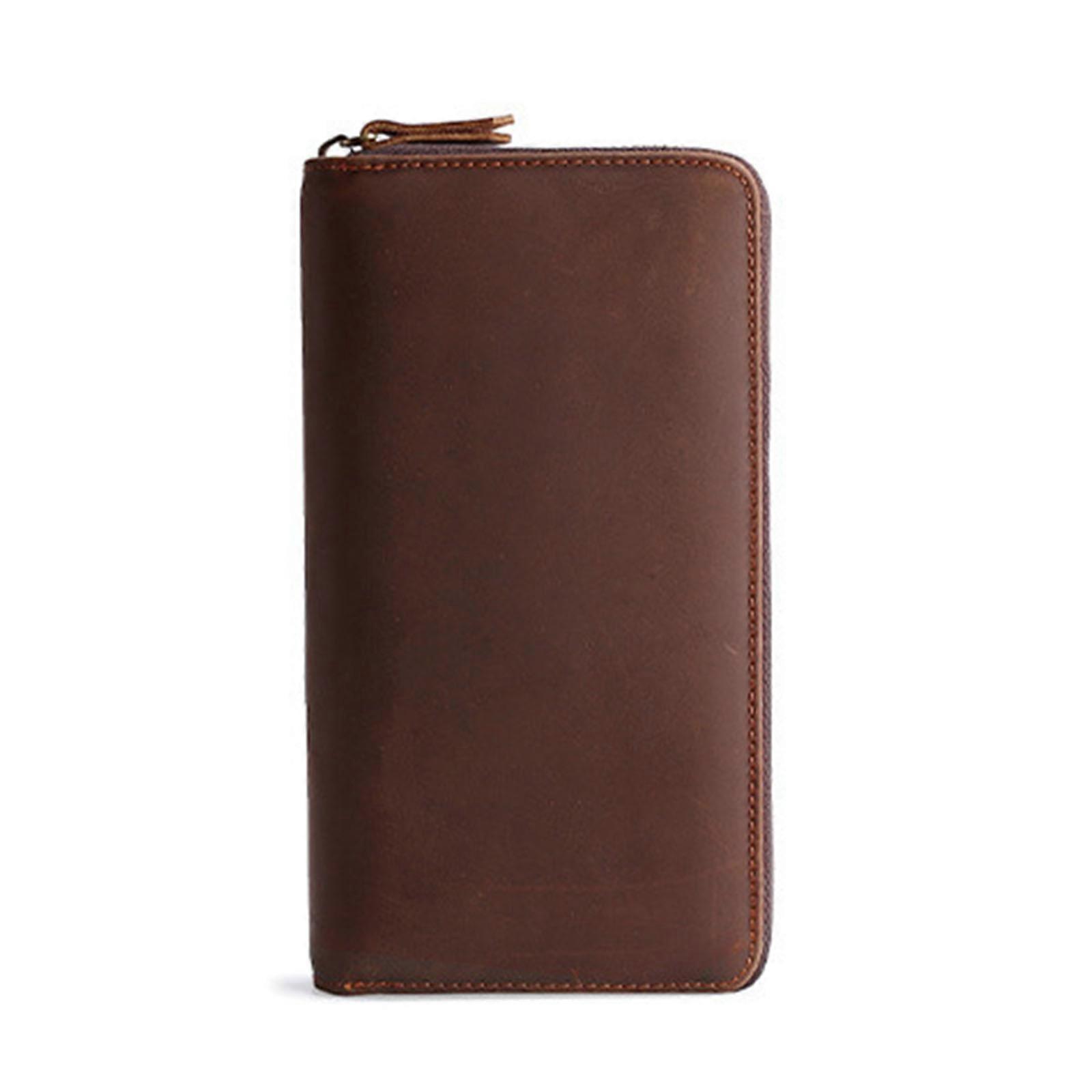 Multi-purpose Leather Purse Business Travel Large Capacity Retro Style Clutch Bag for Cash Cellphone Durable Mens Purse coffee
