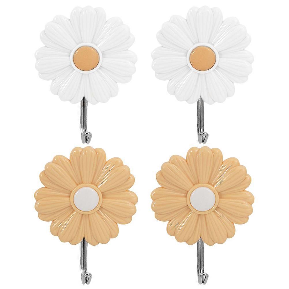 Multi-Functional Decorative Daisy Hook With Strong Adhesive For Homeowners In Assorted Color Perfect For Bathroom Living Room 4Pcs