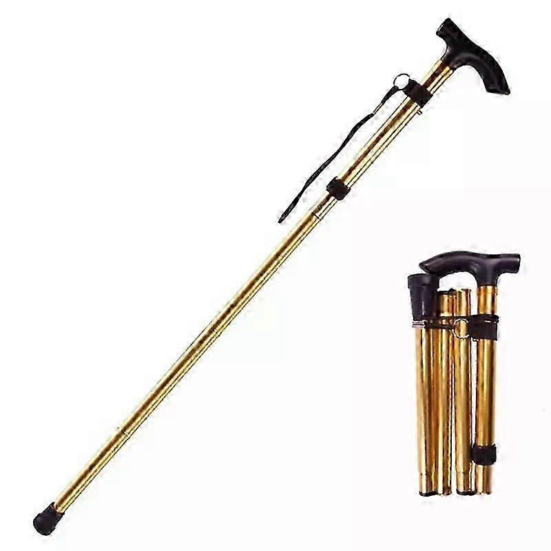 Multifunction Walking Stick Trekking Poles Telescopic Fold Crutches Hiking Stick Crutch Elderly Metal Stick Walking Cane Outdoor--Gold