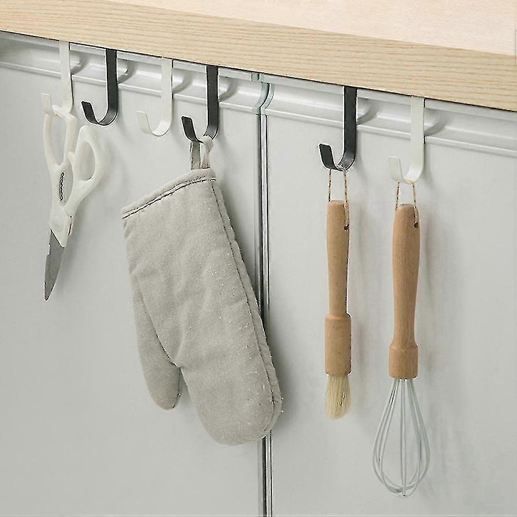 Multi- Hooks Kitchen Cabinet Door Back Hook Hanging Rack Clothes Coat Hat Towel Hanger Storage Hook White--