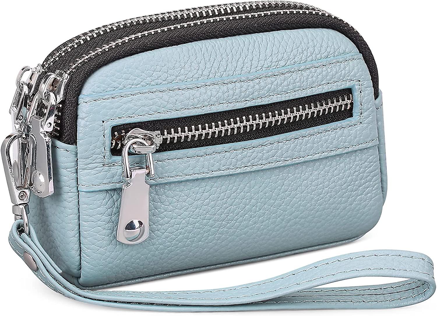 Coin Purse For Women Leather Wristlet Double Zip Around Small Change Pouch