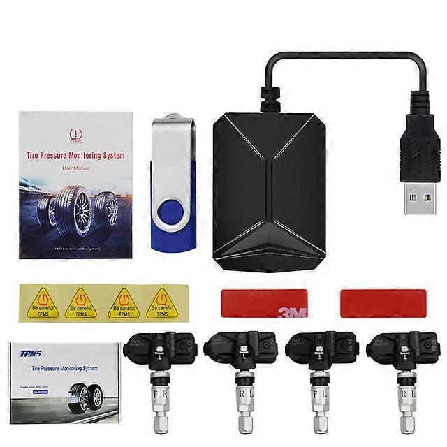 New TPMS for Android CAR DVD Car Tire Pressure Monitoring System USB Tire Sensors Alarm Monitoring System 4pcs/kit